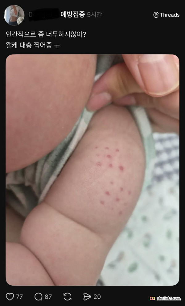 거진 평생 가는 주사자국인데 너무 한 거 같음.. 페이지 정보 작성자 pkg 댓글 0건 조회 236회 작성일 26-04-11 17:55 목록 답변 글쓰기 본문 +내용 추가90년대생 무묭이는 피내용 맞아서 자국 안남았는데 00년대생 보면 20살 넘어서까지 자국 남아있고 비급여주사임 9만원 정도 함 이전글볶음밥 먹을때 짬뽕국물 vs 계란국물 26.04.11 다음글외국에서 좋아요 29만개 받은 한국 사진 26.04.11 댓글 0 댓글목록 등록된 댓글이 없습니다.