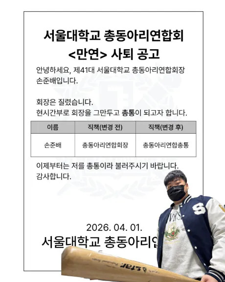 서울대학교 총동아리연합회장 사퇴 페이지 정보 작성자 fiveou 댓글 0건 조회 144회 작성일 26-04-01 18:49 목록 답변 글쓰기 본문 대신 총통으로 취임 이전글 관공서에서 문자 발송 후 사과문 띄움 26.04.01 다음글 스팀 인디게임 대참사 (영구 무료 확정) 26.04.01 댓글 0 댓글목록 등록된 댓글이 없습니다.