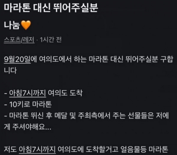 참고로 오는 5월달에 포켓몬런이라는 마라톤 이벤트가 있는데 그때 즈음에도 저런 당근 나눔글이 제법 올라올 것으로 예상 크크