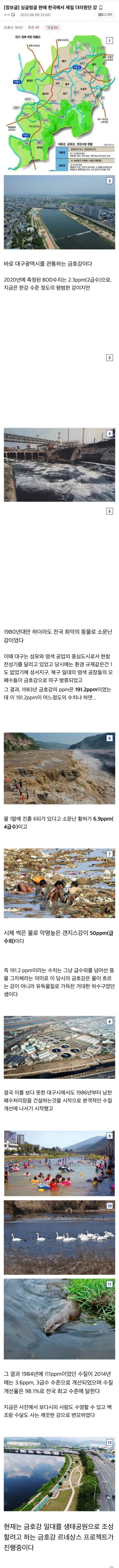 한 때 한국에서 제일 더러웠던 대구 강 페이지 정보 작성자 pkg 댓글 0건 조회 152회 작성일 26-03-16 15:07 목록 답변 글쓰기 본문 이전글쿠팡 불매운동 효과 슬슬 나오기 시작하는중 26.03.16 다음글한국에 있는 해외의 보물 26.03.16 댓글 0 댓글목록 등록된 댓글이 없습니다.