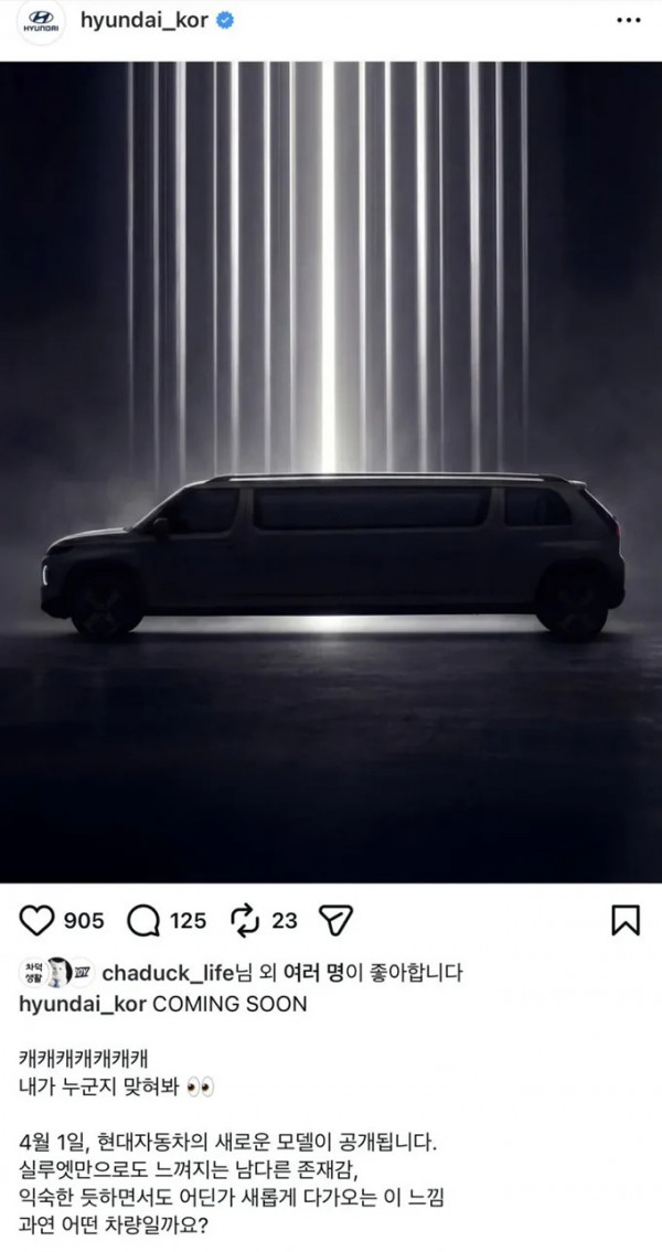 캐스퍼 신차 티저 발표 페이지 정보 작성자 pkg 댓글 0건 조회 138회 작성일 26-04-01 17:39 목록 답변 글쓰기 본문 이전글홈플러스 익스프레스 인수에 나선 메가커피 근황 26.04.01 다음글인류가 지금까지 발견한 가장 큰 육상 무척추동물 26.04.01 댓글 0 댓글목록 등록된 댓글이 없습니다.