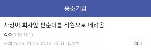 회사앞 편순이 취직시킨 사장 페이지 정보 작성자 pkg 댓글 0건 조회 127회 작성일 26-04-06 16:09 목록 답변 글쓰기 본문 이전글KT도 인터넷 설치·수리 업무 '외국인'에 맡긴다 26.04.06 다음글간부도 못 건드린 190cm 괴물 상병 26.04.06 댓글 0 댓글목록 등록된 댓글이 없습니다.