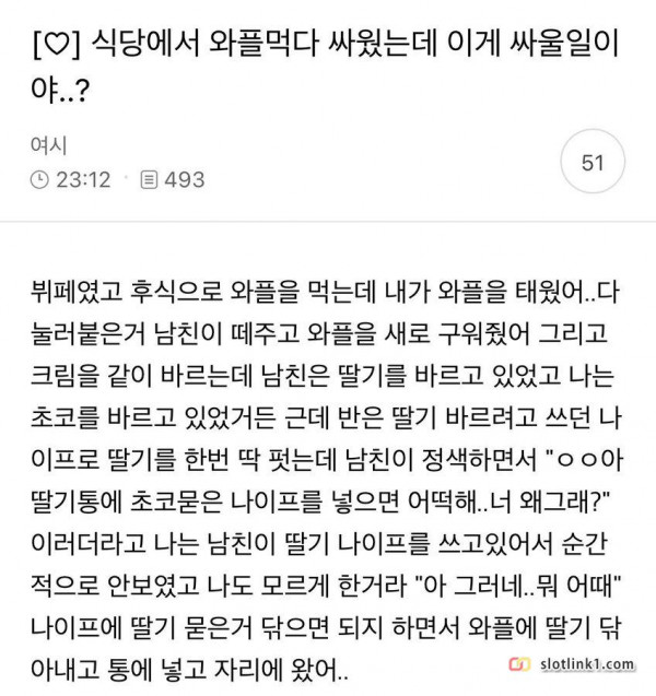 식당에서 와플 먹다 싸웠는데 이게 싸울 일이야? 페이지 정보 작성자 pkg 댓글 0건 조회 169회 작성일 26-04-14 02:18 목록 답변 글쓰기 본문 다음글회사에 커피머신 있는 직장인 특징 26.04.14 댓글 0 댓글목록 등록된 댓글이 없습니다.