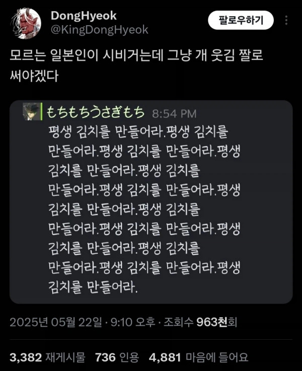 한국인을 저주하는 사람 페이지 정보 작성자 fiveou 댓글 0건 조회 204회 작성일 26-03-20 17:57 목록 답변 글쓰기 본문 음 새김치 좋아 이전글 붉은 사막 컨트롤.mp4 26.03.20 다음글 방탄 컴백앨범 김구선생님 샤라웃.jpg 26.03.20 댓글 0 댓글목록 등록된 댓글이 없습니다.