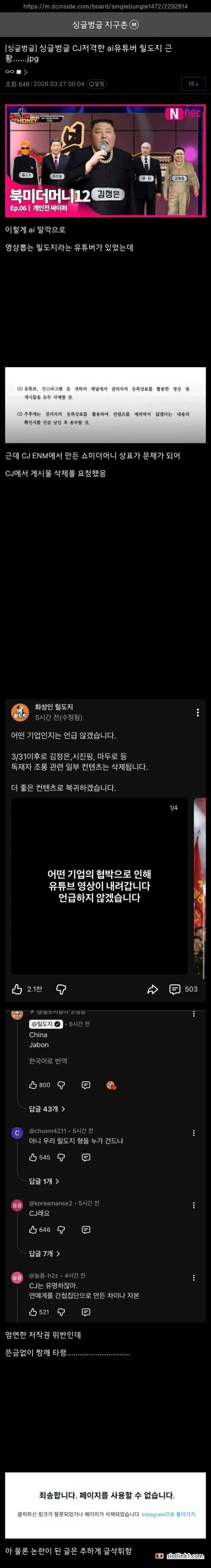 저작권 침해에 대한 AI유투버의 대응 페이지 정보 작성자 fiveou 댓글 0건 조회 167회 작성일 26-03-27 20:24 목록 답변 글쓰기 본문 타인의 저작권은 알 바 아니지만 내 AI생성물은 무엇보다도 소중하고 아무튼 나를까면 중국이고 중국자본임 이전글 텐가회사의 특이한 이력 26.03.27 다음글 주식갤러리 근황 26.03.27 댓글 0 댓글목록 등록된 댓글이 없습니다.