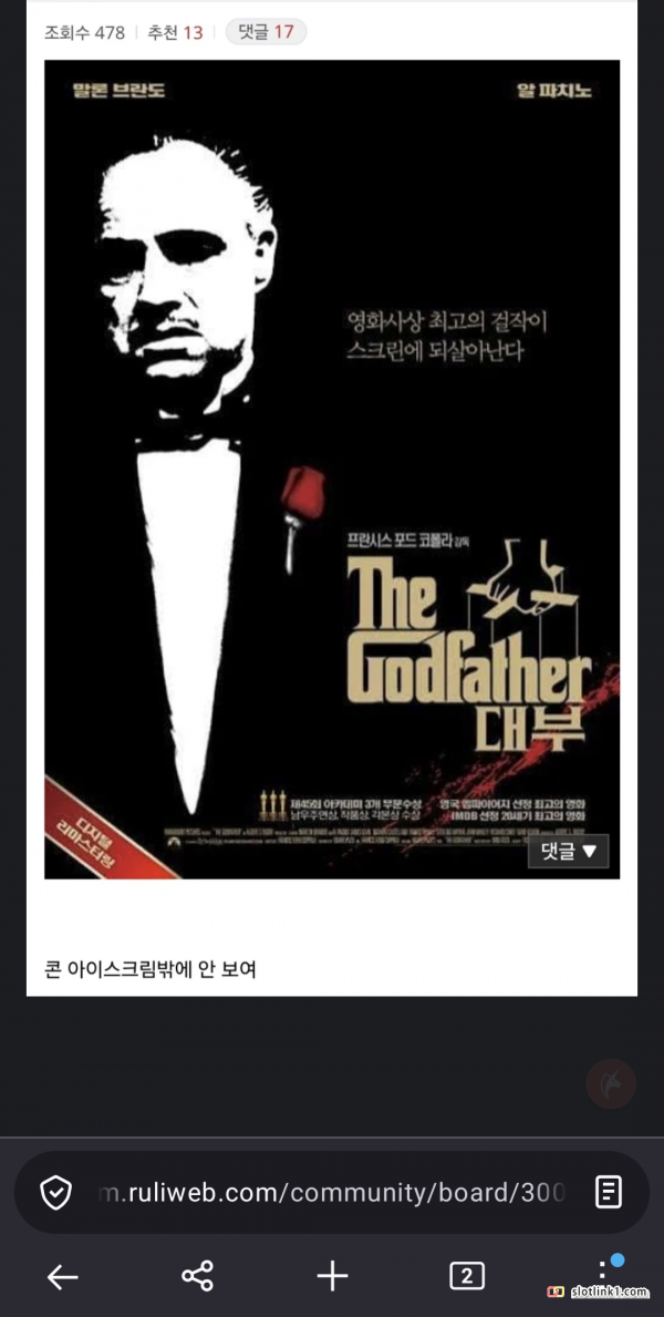 영화 "대부" 포스터 페이지 정보 작성자 fiveou 댓글 0건 조회 196회 작성일 26-04-03 22:14 목록 답변 글쓰기 본문 저렇게 보이다니... 이전글 손들고 쏘지 말랬는데 그냥 쏴버린 경찰 26.04.04 다음글 진짜 레어템 26.04.03 댓글 0 댓글목록 등록된 댓글이 없습니다.