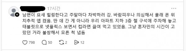 남편이 바람피우는 줄 알고 의심한 아내 페이지 정보 작성자 pkg 댓글 0건 조회 149회 작성일 26-04-27 15:23 목록 답변 글쓰기 본문 혼자만의 동굴이 필요했던 남편.. 남편이 바람피우는 줄 알고 의심한 아내 이전글주민센터에서 짬처리 당하는 공무원 26.04.27 다음글딸이 트랜스젠더를 포기한 이유 26.04.27 댓글 0 댓글목록 등록된 댓글이 없습니다.