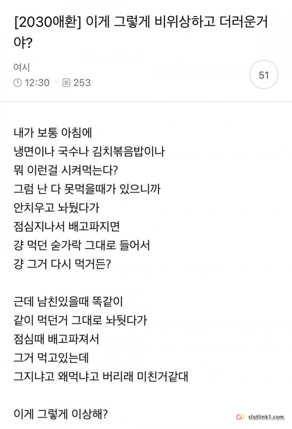 이게 그렇게 비위상하고 더러운거야? 페이지 정보 작성자 pkg 댓글 0건 조회 110회 작성일 26-04-27 18:56 목록 답변 글쓰기 본문 이전글어제 중국 이스포츠 선수 우승 후 페이커 기습 숭배 26.04.27 다음글의외로 어렵다는 중소기업 입사시험 문제 26.04.27 댓글 0 댓글목록 등록된 댓글이 없습니다.