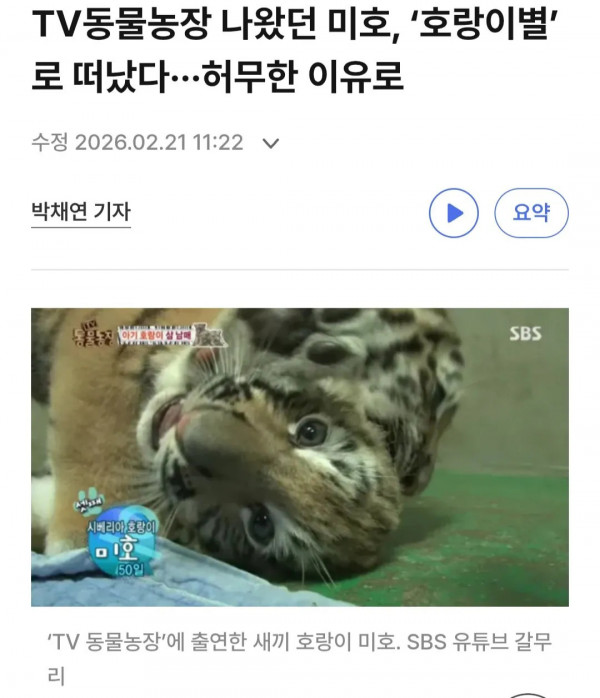 현재 논란중이라는 서울대공원 호랑이 미호 죽음 사건