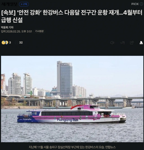 한강버스 다음달 전구간 운항 재개…4월부터 급행 신설 페이지 정보 작성자 pkg 댓글 0건 조회 201회 작성일 26-02-26 07:43 목록 답변 글쓰기 본문 https://n.news.naver.com/mnews/article/022/0004108385?sid=102 다음글채식을 하면 안되는 역사적이고 과학적인 이유 26.02.26 댓글 0 댓글목록 등록된 댓글이 없습니다.