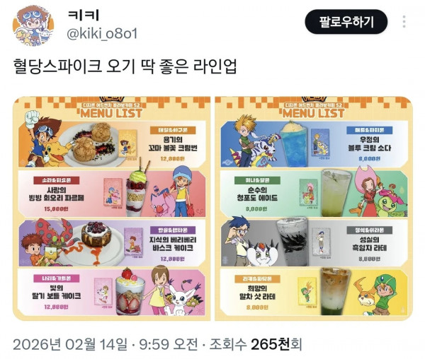 디지몬 어드벤처 콜라보 카페 메뉴들 페이지 정보 작성자 pkg 댓글 0건 조회 156회 작성일 26-03-30 01:12 목록 답변 글쓰기 본문 이전글그랜저 급이 된 아반떼 26.03.30 다음글고종 & 순종 실제 모습 26.03.29 댓글 0 댓글목록 등록된 댓글이 없습니다.