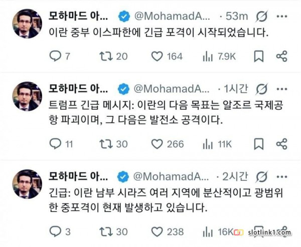 지금 이란 폭격 엄청하나 봄 페이지 정보 작성자 pkg 댓글 0건 조회 138회 작성일 26-04-03 18:37 목록 답변 글쓰기 본문 이전글오늘만 요금을 받지 않는 제주 시내버스 26.04.03 다음글중국 "한국은 중국인 관광객 더 받고 싶으면 진정성 보여라" 26.04.03 댓글 0 댓글목록 등록된 댓글이 없습니다.