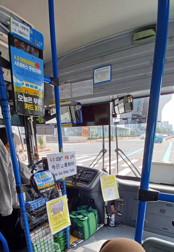 오늘만 요금을 받지 않는 제주 시내버스 페이지 정보 작성자 pkg 댓글 0건 조회 122회 작성일 26-04-03 18:37 목록 답변 글쓰기 본문 올해 처음 시행하는 4.3 추념일 제주도 모든 시내버스 무료 승차작년 12월에 조례를 만들어서 준비 기간이 부족했는지 올해는 교통카드 태그 없이 시내버스 이용 가능※ 무료승차 제외 노선: 우도관광지순환, 해안도로 순환, 시티버스(921, 922, 1111, 1112, 1113번 노선)버스 내부 외에는 정류장 등에 안내문이 없었고(버스 도착정보 단말기 포함), 사전 홍보가 부족했는지 카드를 준비하고 탔다가 스티커보고 무료인줄 아는 승객이 많았음 오늘만 요금을 받지 않는 제주 시내버스 이전글26년 상반기 SK하이닉스 서류합격 스펙 26.04.03 다음글지금 이란 폭격 엄청하나 봄 26.04.03 댓글 0 댓글목록 등록된 댓글이 없습니다.