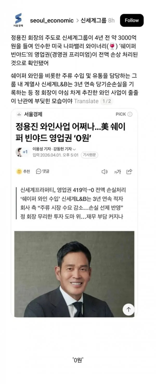 정용진이 3천억 투자했던 와인사업 근황 페이지 정보 작성자 pkg 댓글 0건 조회 123회 작성일 26-04-04 04:09 목록 답변 글쓰기 본문 이전글이재모피자 임실치즈에서 자체개발 치즈로 변경 26.04.04 다음글대이란작전 연합뉴스 근황 26.04.04 댓글 0 댓글목록 등록된 댓글이 없습니다.