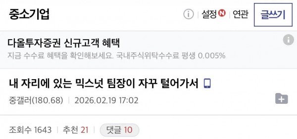 내 자리에 있던 믹스넛 털어가던 팀장의 최후 페이지 정보 작성자 pkg 댓글 0건 조회 204회 작성일 26-02-21 10:38 목록 답변 글쓰기 본문 이전글의외로 엄청 잘사는 나라 26.02.21 다음글저가커피 중 압도적으로 맛있다는 평 많은 브랜드 26.02.21 댓글 0 댓글목록 등록된 댓글이 없습니다.