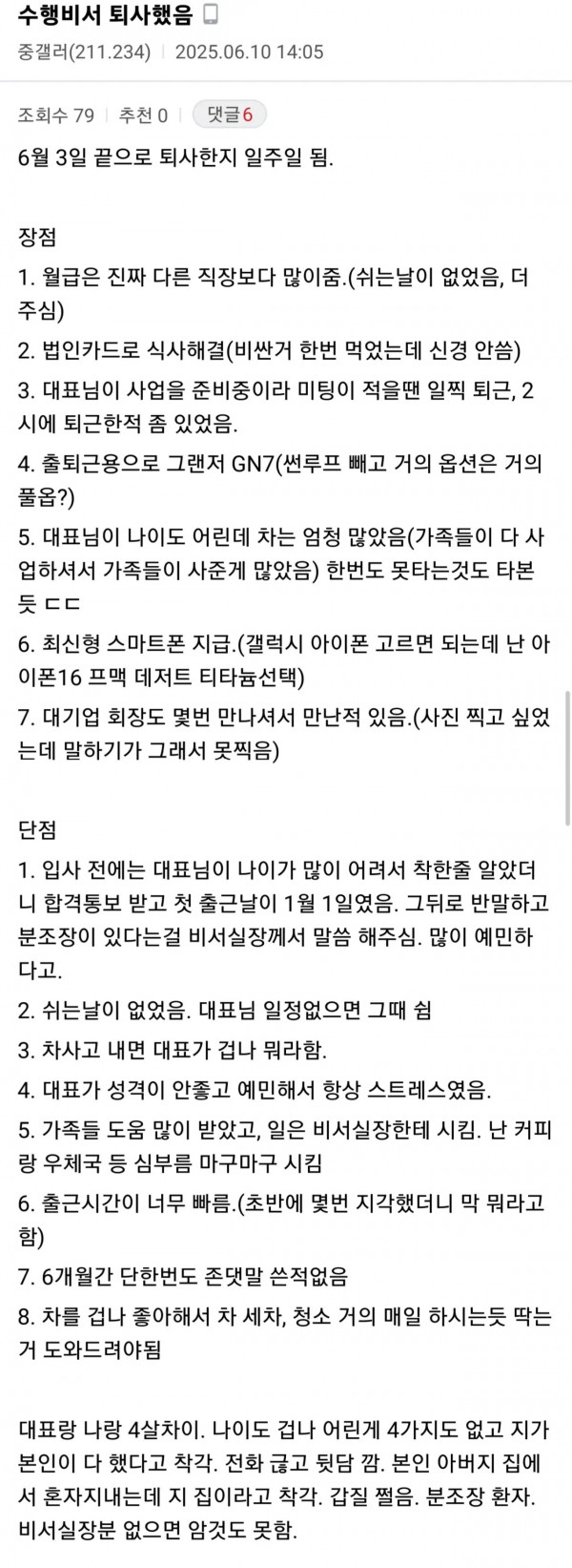 젊은 대표의 수행비서로 일해봤다는 사람 페이지 정보 작성자 pkg 댓글 0건 조회 142회 작성일 26-04-12 03:50 목록 답변 글쓰기 본문 이전글정말 살인날 것 같은 엘리베이터 메모 26.04.12 다음글뇌가 90%가 없는데 공무원으로 일하고 있었음 26.04.12 댓글 0 댓글목록 등록된 댓글이 없습니다.