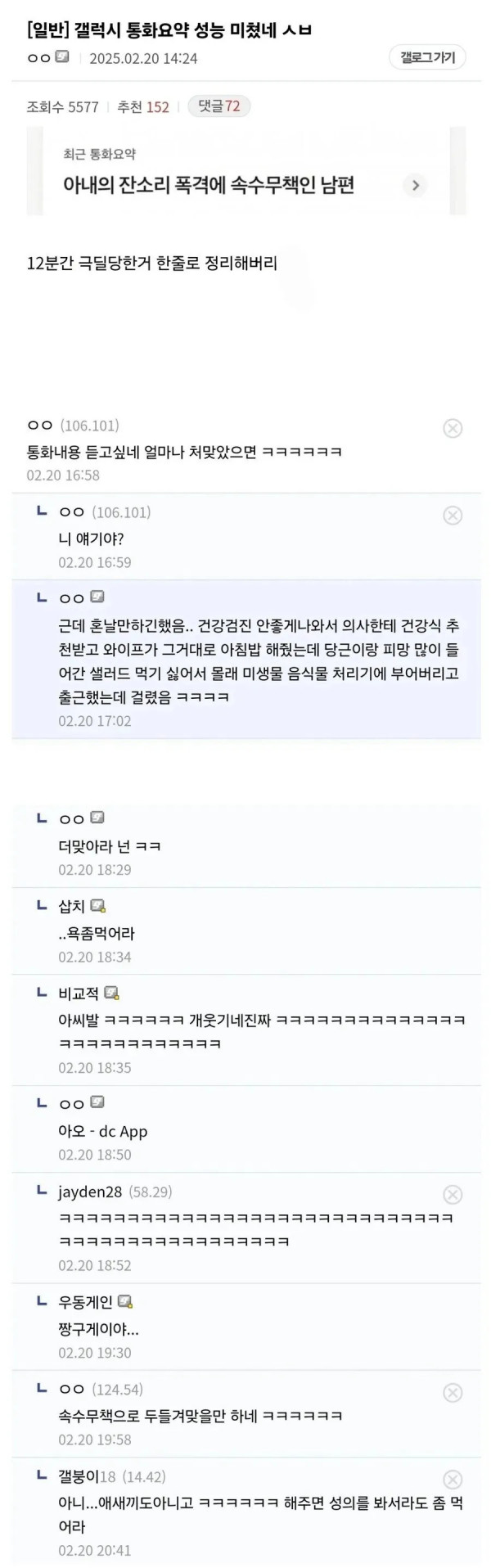 와이프한테 12분간 존나 잔소리들은 사람 페이지 정보 작성자 pkg 댓글 0건 조회 161회 작성일 26-04-12 05:08 목록 답변 글쓰기 본문 이전글되팔렘을 컷트한 검표원에게 쏟아지는 극찬 26.04.12 다음글바람을 안 피우는 남자들의 특징 26.04.12 댓글 0 댓글목록 등록된 댓글이 없습니다.