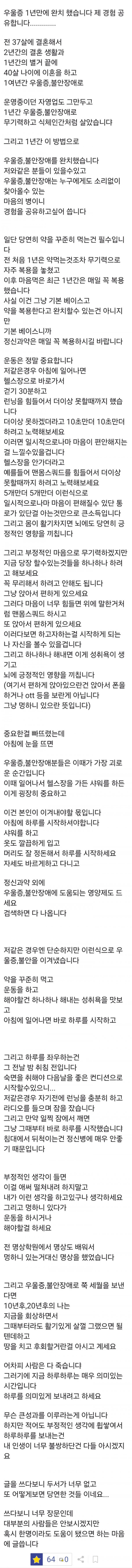 우울증 1년만에 완치한 사람의 경험 공유 페이지 정보 작성자 pkg 댓글 0건 조회 134회 작성일 26-04-12 23:55 목록 답변 글쓰기 본문 의지와 노력으로 완치 하신듯 싶네요. 출처 - 디시 정신과갤 이전글흙수저 대기업인데 세금은 세금대로 때고 힘들다 26.04.12 다음글남자들은 공무원 하지마라는 공무원 26.04.12 댓글 0 댓글목록 등록된 댓글이 없습니다.