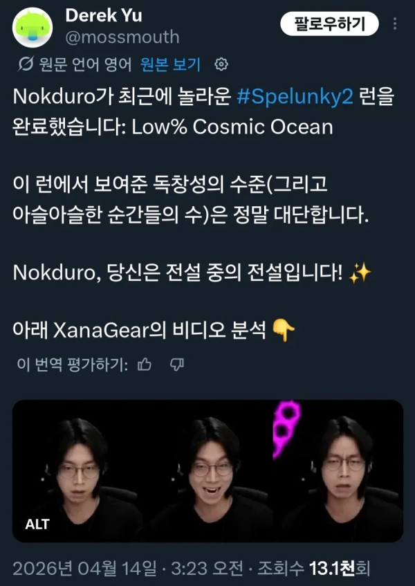 한국인이 세계 1위 달성하자 개발자조차 언급해줌 페이지 정보 작성자 pkg 댓글 0건 조회 161회 작성일 26-04-16 12:19 목록 답변 글쓰기 본문 스펠렁키2 라는 쉽고 재밌는 게임인데 아이템 안먹고는 7-99까지 가기 어려움 아이템 먹으면 좀 쉬움 그런데 이번에 1-1 에서 7-99까지 아이템 안먹고 그냥 가는 플레이 방식으로 혼자 깨버리면서 세계 1위에 달성함 플레이시간만 6시간이고 2위랑 차이를 보면 얼마나 어려운지 알 수 있음 그냥 사람자체가 대단하다고 함 https://mossranking.com/cat.php?cat=264 한국인이 세계 1위 달성하자 개발자조차 언급해줌 이전글아직도 멀쩡히 기능중인 2천 년 된 고대 목욕탕 26.04.16 다음글광주 여고선생의 갑질 26.04.16 댓글 0 댓글목록 등록된 댓글이 없습니다.