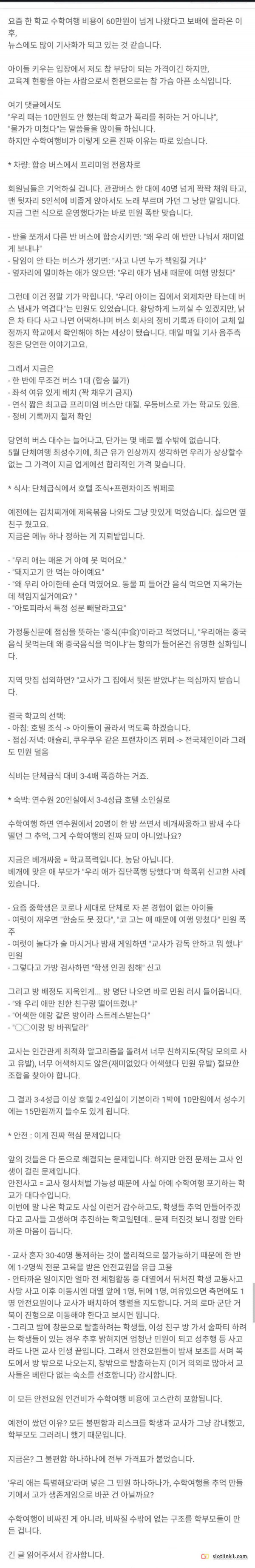 강릉 2박3일 수학여행 비용이 60만원인 이유 페이지 정보 작성자 pkg 댓글 0건 조회 172회 작성일 26-04-16 16:13 목록 답변 글쓰기 본문 이전글크롬 확장 프로그램으로 HWP 편집 및 뷰어 출시 26.04.16 다음글캠핑카 규제가 나날이 빡세지는 이유 26.04.16 댓글 0 댓글목록 등록된 댓글이 없습니다.