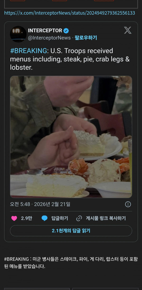 미군 미 병사들에게 성찬 지급 페이지 정보 작성자 pkg 댓글 0건 조회 137회 작성일 26-02-22 12:06 목록 답변 글쓰기 본문 보통 전쟁 나기전에 저렇게 먹인다던데.. 이전글40대가 되어서 느낀다는 사회생활의 진리 26.02.22 다음글동남아에서 유행하는 쌍꺼풀 줄이는 수술 26.02.22 댓글 0 댓글목록 등록된 댓글이 없습니다.