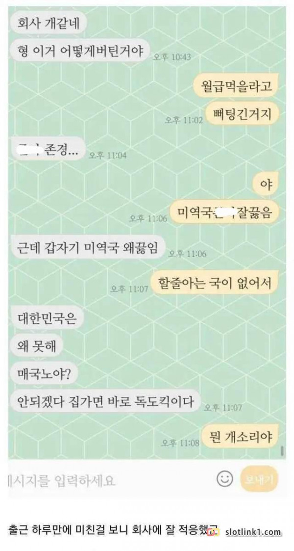 [유머] 첫출근 하고 미쳐버린 동생...jpg 페이지 정보 작성자 fiveou 댓글 0건 조회 114회 작성일 26-02-21 09:28 목록 답변 글쓰기 본문 내일이 오지 않기를... 다음글[유머] 내성적인 사람이 못 먹는 음식 26.02.21 댓글 0 댓글목록 등록된 댓글이 없습니다.