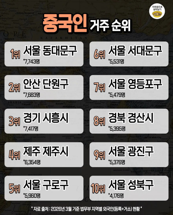국내 외국인별 많이 사는 지역 순위 페이지 정보 작성자 pkg 댓글 0건 조회 166회 작성일 26-04-24 06:28 목록 답변 글쓰기 본문 이전글인도에서 파는 3만원짜리 랍스터 정식 26.04.24 다음글일본이 자국 여행으로 만족 하는 이유 26.04.24 댓글 0 댓글목록 등록된 댓글이 없습니다.