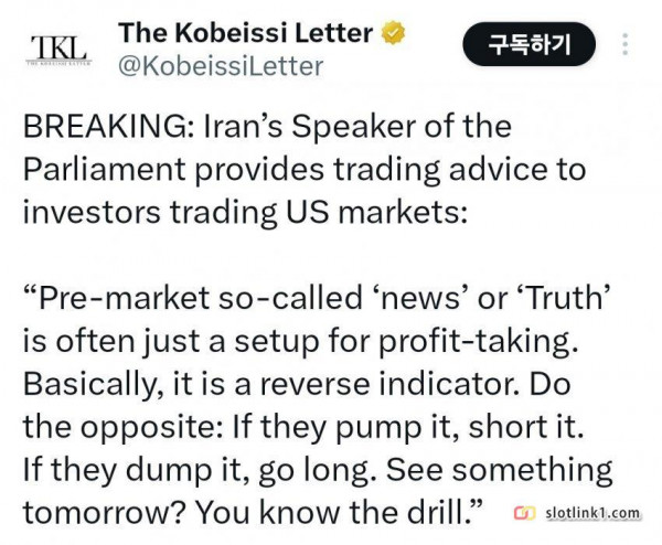 이란 국회의장, 전세계 주식 투자자들에게 일침. 페이지 정보 작성자 pkg 댓글 0건 조회 124회 작성일 26-03-30 22:45 목록 답변 글쓰기 본문 전 세계 주식 투자자님들이 장전이나 장후 가짜 뉴스에 휘둘린다고 일침 이전글한눈에 보는 대중교통의 효과 26.03.31 다음글레고랜드 발렛파킹 끔찍한 사고 ㄷㄷㄷ 26.03.30 댓글 0 댓글목록 등록된 댓글이 없습니다.