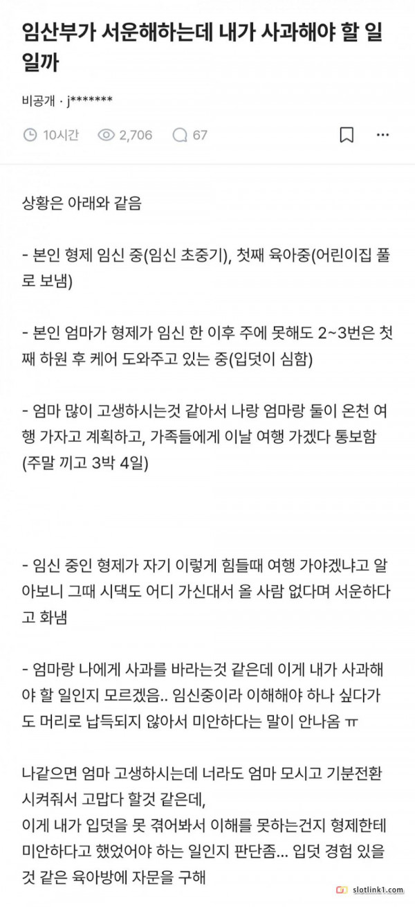 임산부가 서운해하는데 내가 사과해야 할 일일까 페이지 정보 작성자 pkg 댓글 0건 조회 215회 작성일 26-04-01 23:17 목록 답변 글쓰기 본문 이전글[속보] 아마존 바레인 AWS 폭발 26.04.02 다음글고유가 충격에 ‘5월4일 임시공휴일’ 급부상 26.04.01 댓글 0 댓글목록 등록된 댓글이 없습니다.