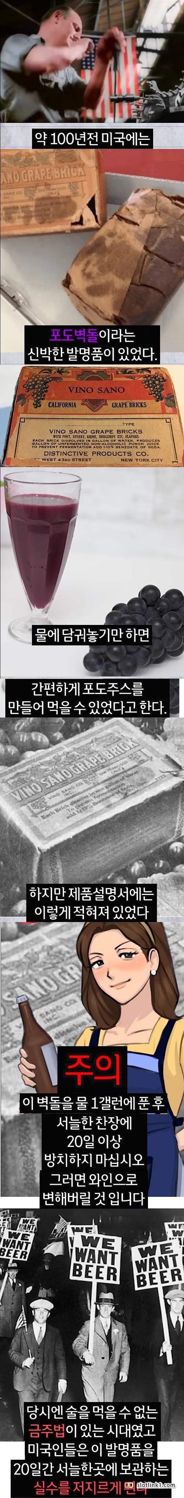 금주법 시대 미국의 획기적인 제품 페이지 정보 작성자 fiveou 댓글 0건 조회 227회 작성일 26-04-21 23:44 목록 답변 글쓰기 본문 포도벽돌 : 여기에 풀 1갤런을 넣으면 맛있는 포도주스가 만들어짐주의사항: 미 포도벽돌에 물 1갤런을 넣은후 서늘한 곳에 20일이상 방치하지 마시오 만일 그렇게 하면 와인으로 변할 것입니다. 이전글 터널의 불빛이 주황색인 이유 26.04.21 다음글 사람마다 갈린다는 제일 먼저 먹는 치킨 부위.jpg 26.04.21 댓글 0 댓글목록 등록된 댓글이 없습니다.
